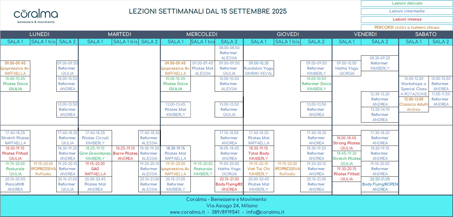 Scegli la tua lezione ideale e vivi il benessere a 360° con Coralma